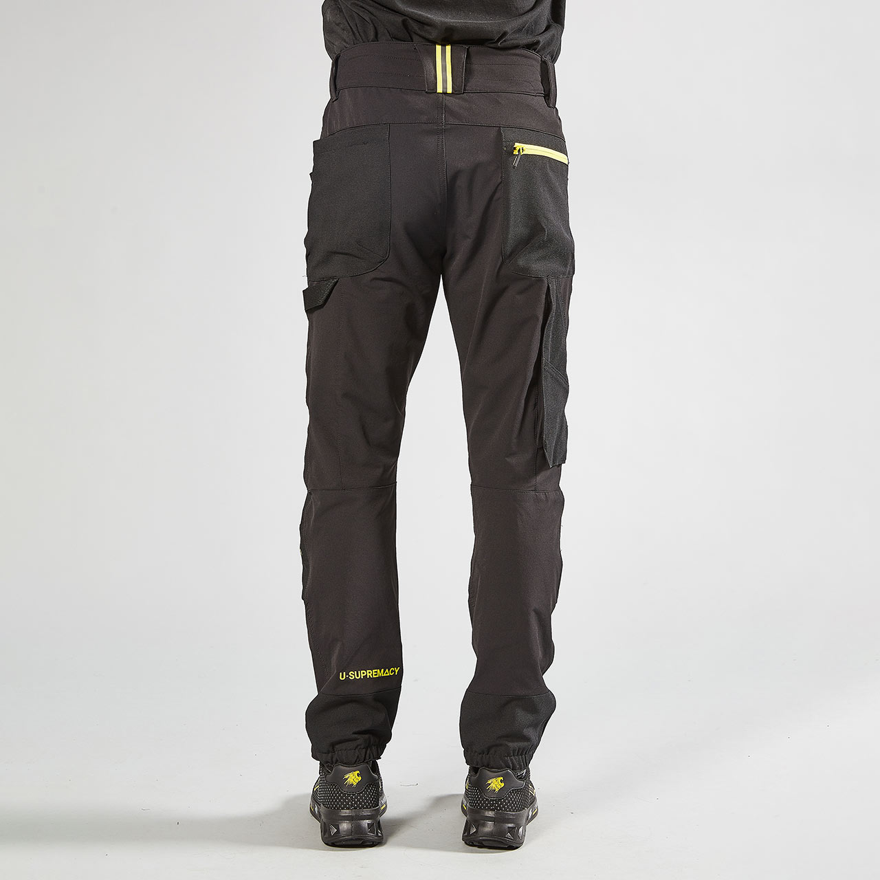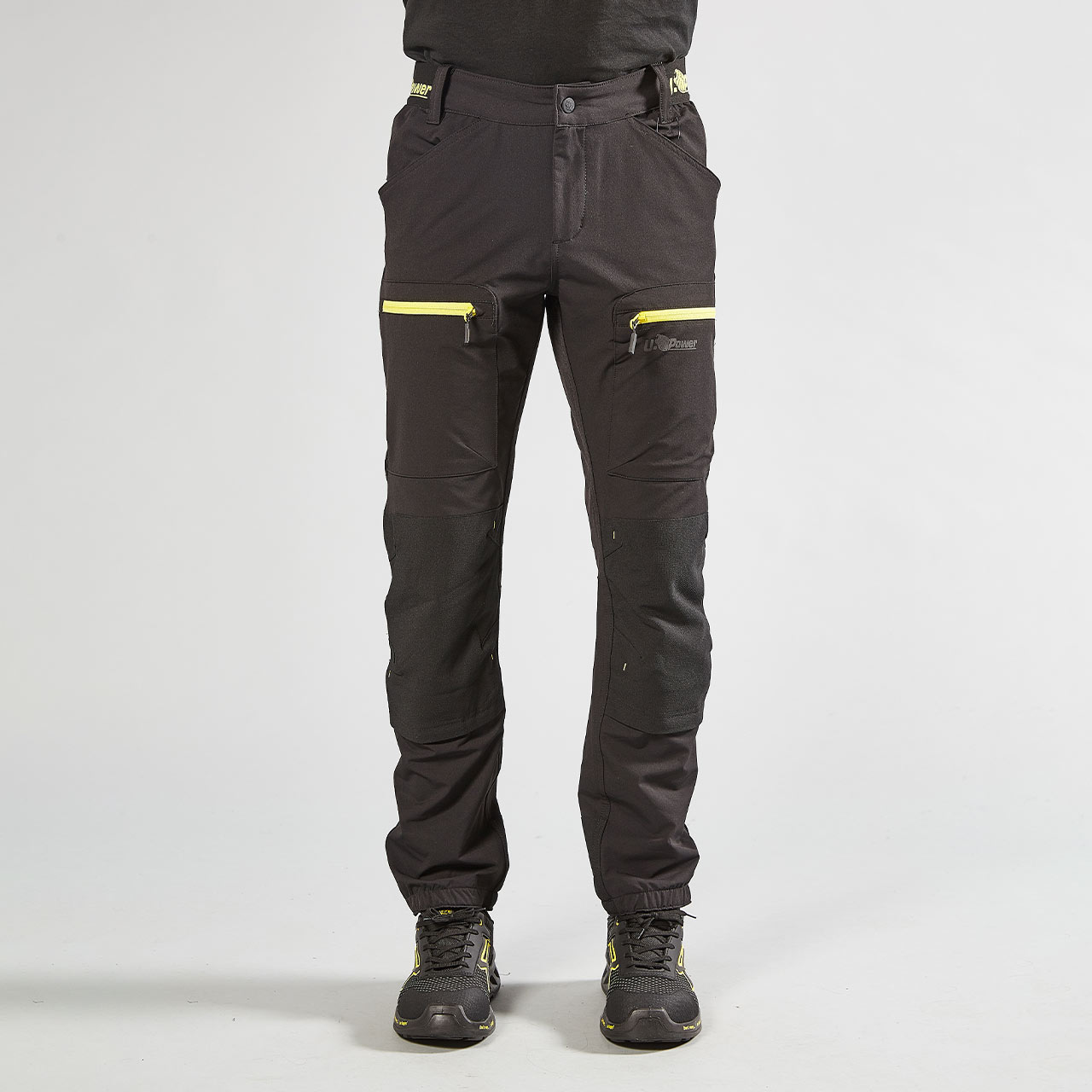 Delovne hlače Harmony U-Power so v stilu tekaških hlač iz blaga U-4(U-Power 4-smerna raztegljivost) za udobno prileganje; so odporne na trganje, mehke na koži, vodoodbojne, zelo zračne in se hitro sušijo. Hlače imajo elatične vložke na manšetah v pasu in gležnjih za udobno prileganje. Hlače imajo veliko žepov, in sicer dva velika sprednja žepa, dva večnamenska sprednja žepa z zadrgo, stranski žep in sprednji desni žep, dva zadnja žepa, eden z zadrgo in drugi s sprimnim trakom, žep za merilni trak in zanka za kladivo, žepi za kolenčnike. Gumb je odporen proti praskam.