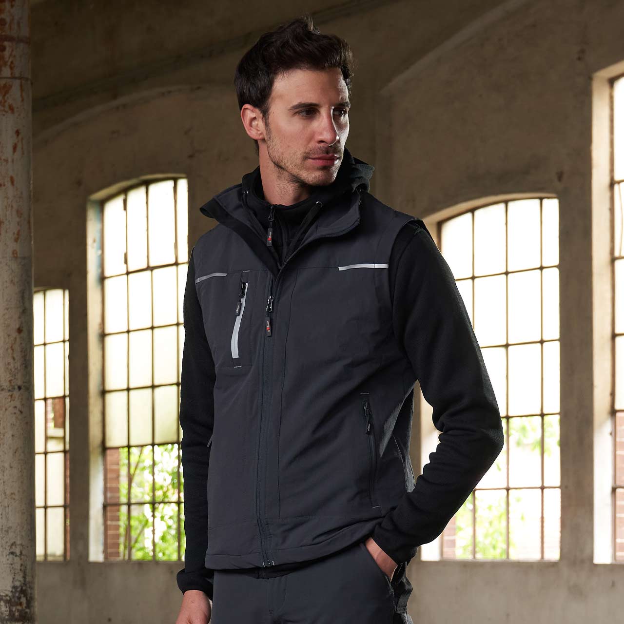 DelovnI telovnik universe U-Power iz softshell materiala z U-Tex membrano, je vodoodbojen, zračen in odporen proti vetru. Zelo udoben in trpežen telovnik z mehko notranjo podlogo iz mikroflisa in vodoodporno centralno zadrgo. Opremljen je z dvema sprednjima žepoma, zaprtima z fluorescenčno zadrgo, dva velika notranja žepa, in nastavljivo notranjo vrvico proti zatikanju. Na prsih ima žep za mobilni telefon z zapiranjem Free Sound technology, ki je prav tako zaprt z fluorescenčno zadrgo. Odsevni element na hrbtni strani ovratnika. Logotip U-Power v drugem odtenku barve telovnika.